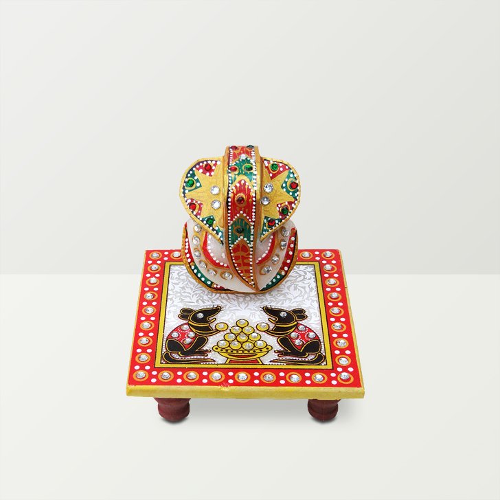 Chitra Handicraft Marble Chowki With Ganesh