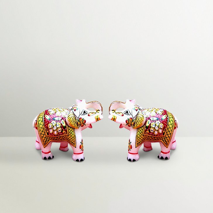 Chitra Handicraft Marble Elephant Multicolor Pair
