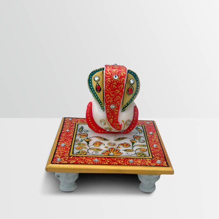 Chitra Handicraft Marble Ganesh Chowki With Floral Print