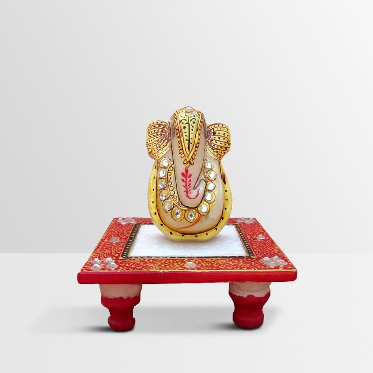 Chitra Handicraft Marble Golden Chowki Ganesh