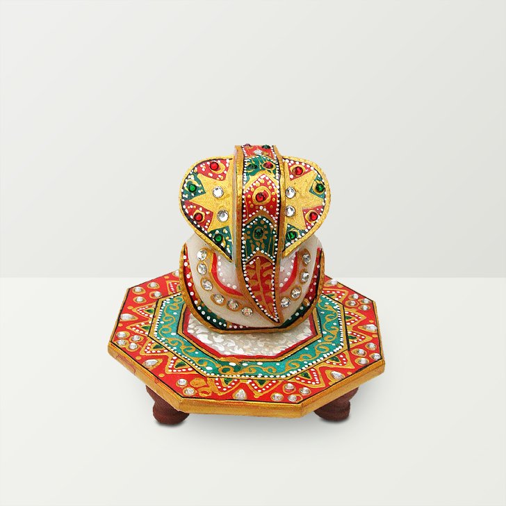 Chitra Handicraft Marble Hexagon Shaped Chowki Ganesh