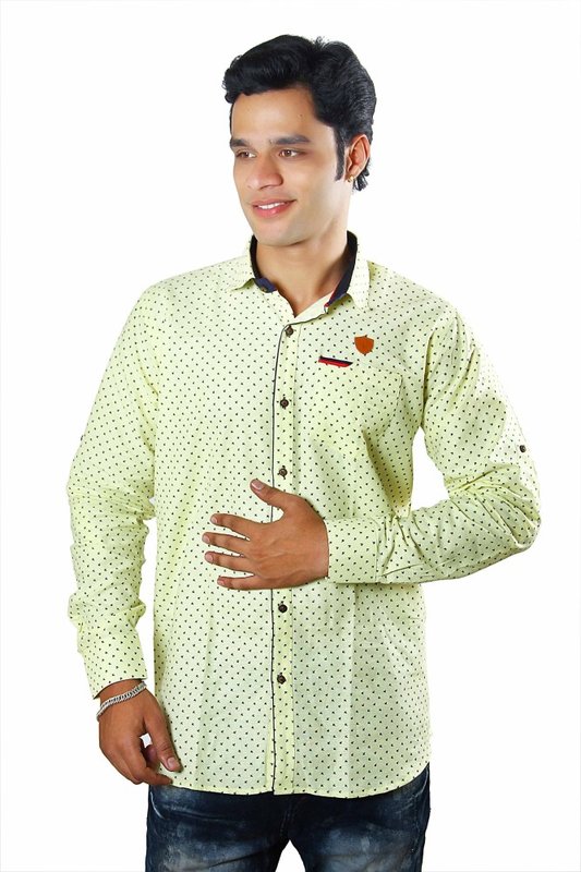 Classic Blues Men's Self Design Casual Reversible Yellow Shirt