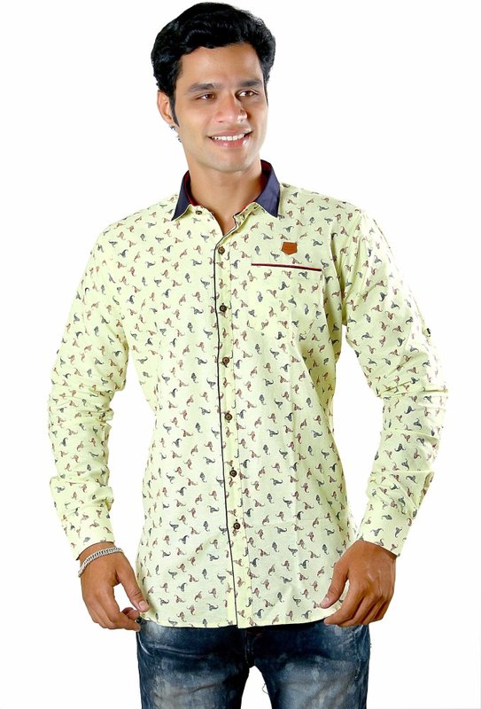 Classic Blues Men's Self Design Casual Reversible Yellow Shirt