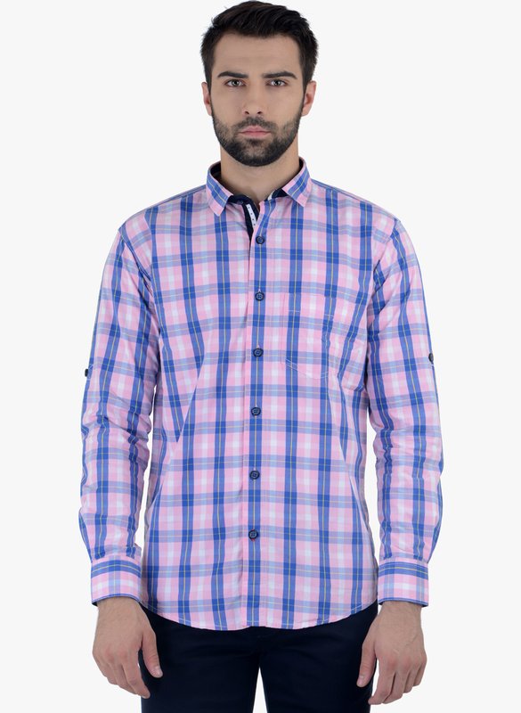 Cobb Pink Checked Slim Fit Casual Shirt
