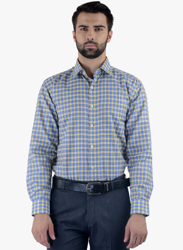 Cobb Yellow Checked Slim Fit Formal Shirt