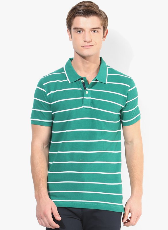 Jabong has Code by Lifestyle Green Striped Polo T-Shirt for Rs.899.00 with Free Shipping