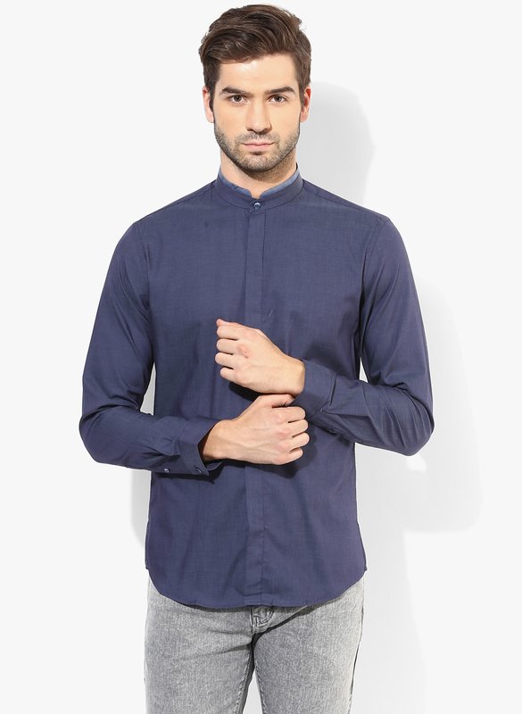 Jabong has Code by Lifestyle Navy Blue Solid Slim Fit Casual Shirt for Rs.1,499.00 with Free Shipping
