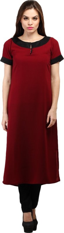 Cottinfab Casual Solid Women's Kurti(Maroon, Black)