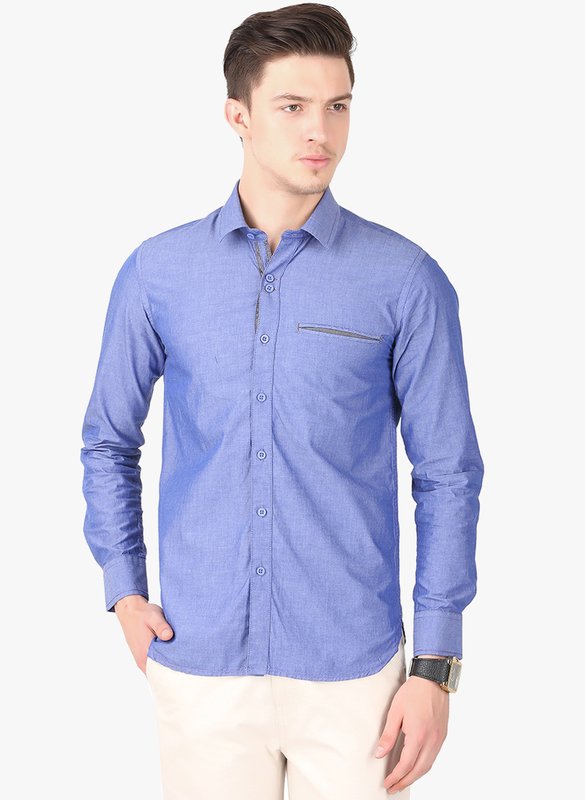 Cotton County Premium Blue Solid Slim Fit Casual Shirt