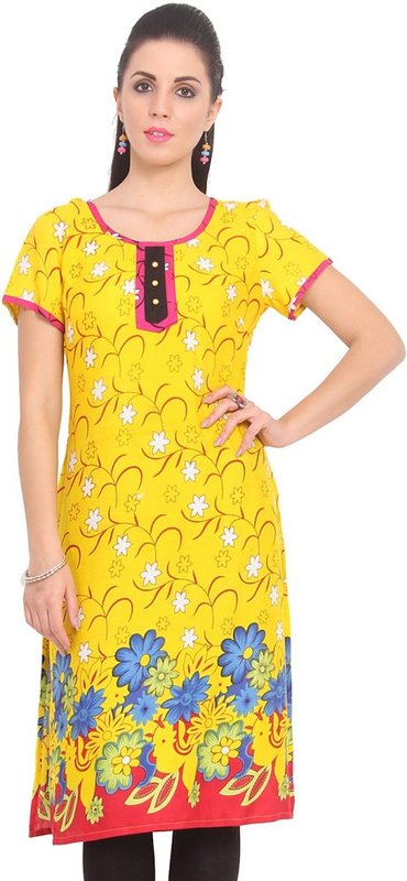 DeDe'S Casual Floral Print Women's Kurti(Yellow)