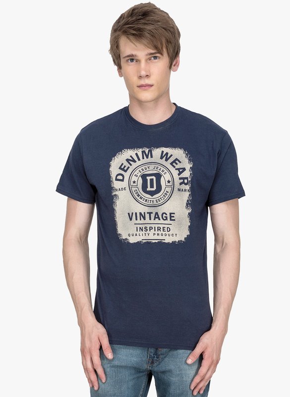 DERBY JEANS COMMUNITY Navy Blue Printed Round Neck T-Shirt