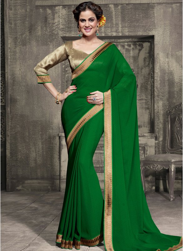 Jabong has Desi Look Green Solid Saree for Rs.3,525.00 - Rs.1,762.00 (Instant Discount) = Rs.1,763.00 with Free Shipping
