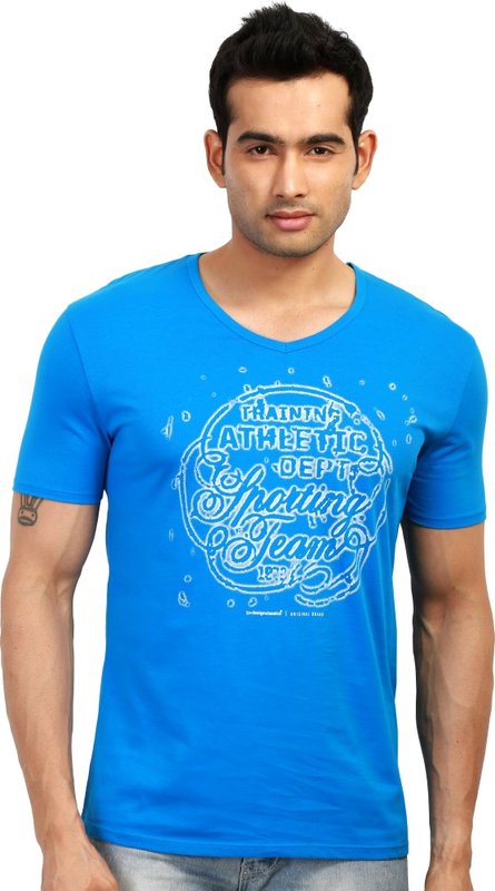 Flipkart has Design Classics Printed Men's V-neck Blue T-Shirt for Rs.399.00 with Free Shipping