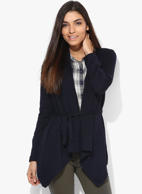 Dorothy Perkins Navy Blue Solid Shrug With Belt