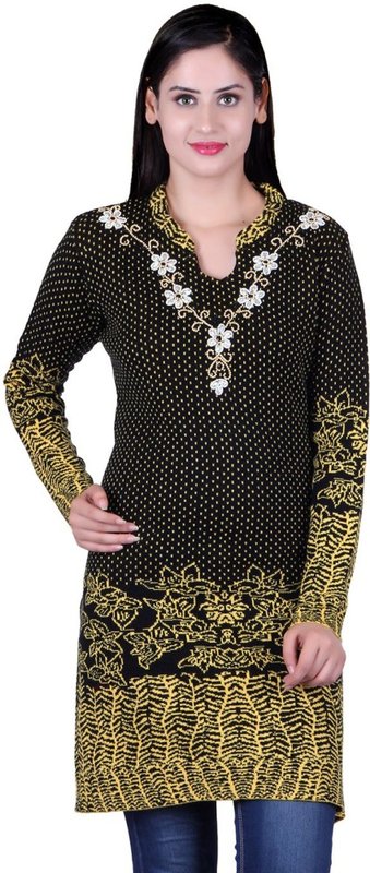 eWools Party Self Design Women's Kurti(Black, Yellow, White)