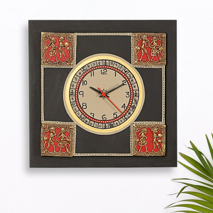 Exclusivelane Dhokra Work And Warli Handapinted Clock Black