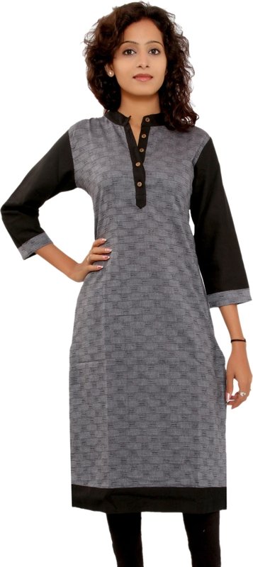 Fab Rajasthan Casual Self Design Women's Kurti(Grey, Black)