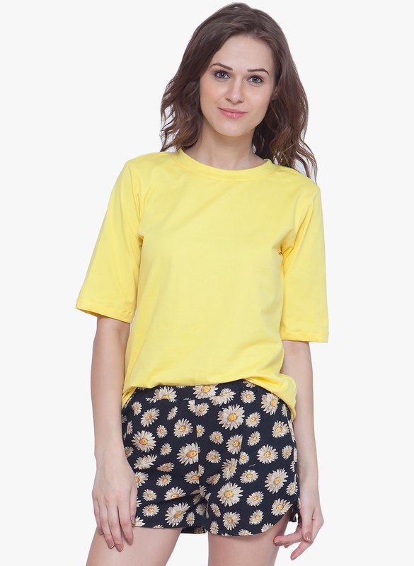 Faballey Yellow Printed Shorts Set