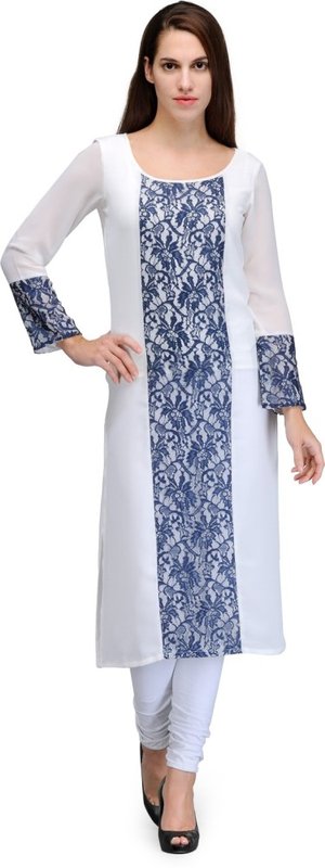 Fashionwalk Casual Solid Women's Kurti(White, Blue)