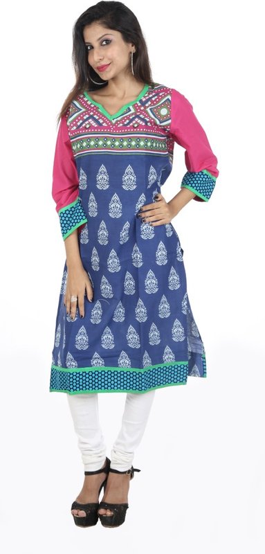 Fazali Kurtis Casual Printed Women's Kurti(Blue)