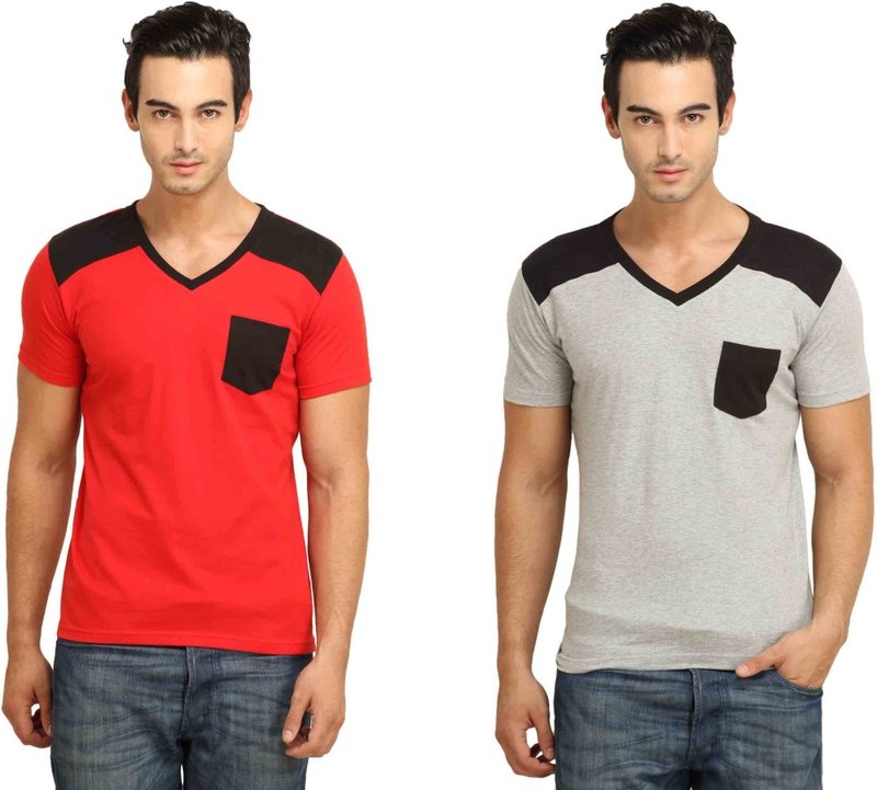 Flipkart has Fio Solid Men's V-neck Red, Grey T-Shirt(Pack of 2) for Rs.1,399.00 - Rs.725.00 (Instant Discount) = Rs.674.00 with Free Shipping