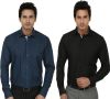 Fizzaro Men's Solid Formal Blue, Black Shirt