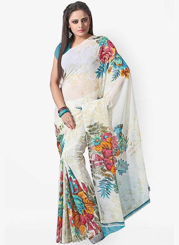 Jabong has Florence White Printed Saree for Rs.824.00 - Rs.425.00 (Instant Discount) = Rs.399.00 with Free Shipping