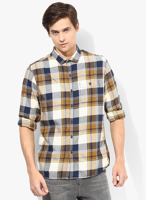 Jabong has Forca By Lifestyle Brown Checks Slim Fit Casual Shirt for Rs.1,299.00 with Free Shipping