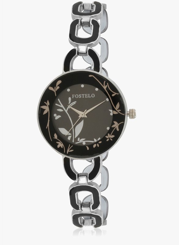 FOSTELO Black/Silver Stainless Steel Analog Watch