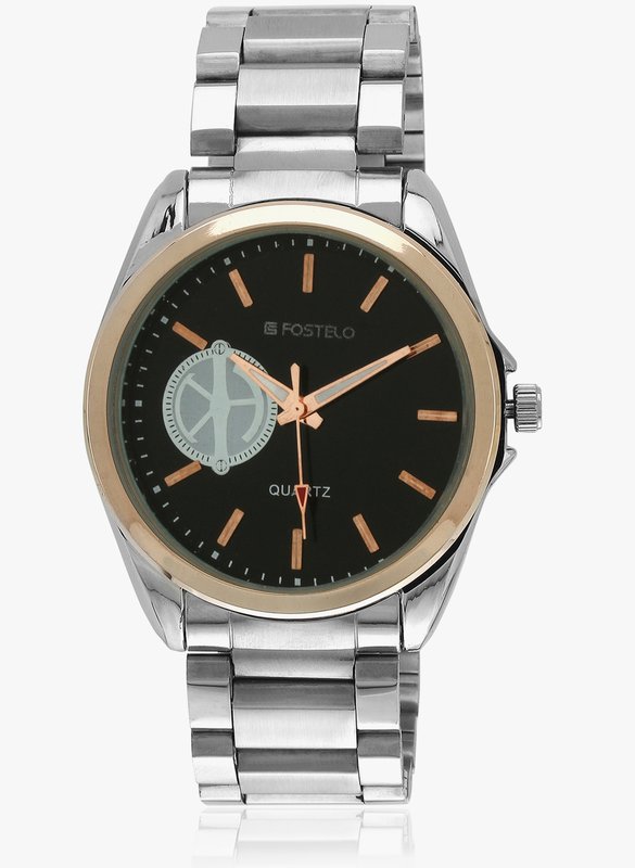 FOSTELO Black Stainless Steel Analog Watch