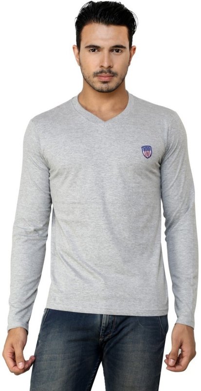Free Spirit Solid Men's V-neck Grey T-Shirt