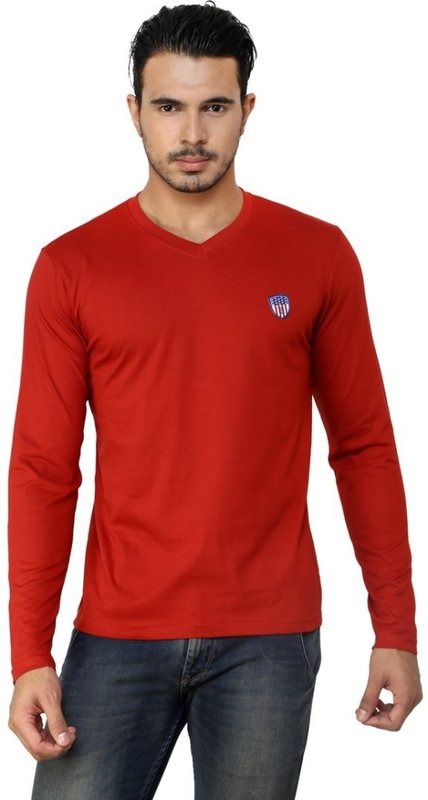 Free Spirit Solid Men's V-neck Red T-Shirt