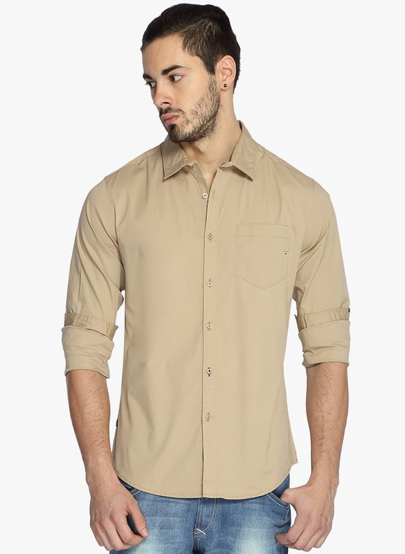 Jabong has Freehand Khaki Solid Slim Fit Casual Shirt for Rs.1,499.00 with Free Shipping