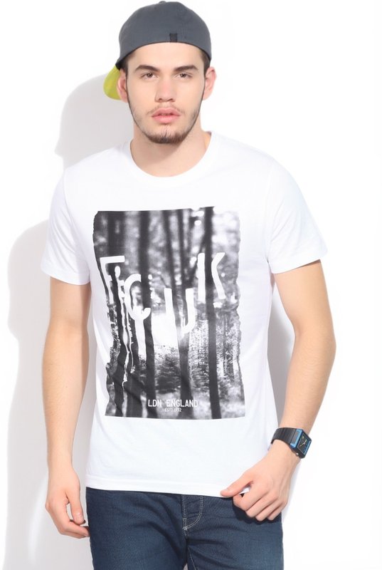 Flipkart has French Connection Printed Men's Round Neck White T-Shirt for Rs.1,899.00 - Rs.393.00 (Instant Discount) = Rs.1,506.00 with Free Shipping