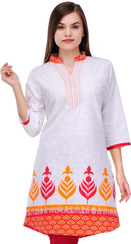 Flipkart has Fuchsia Designs Printed, Woven Women's Straight Kurta(White, Orange, Red) for Rs.899.00 - Rs.450.00 (Instant Discount) = Rs.449.00 with Free Shipping