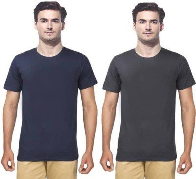 Gallop Solid Men's Round Neck Grey, Dark Blue T-Shirt(Pack of 2)