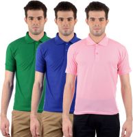 Gdivine Solid Men's Polo Neck Pink, Green, Blue T-Shirt(Pack....