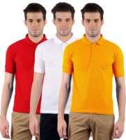 Gdivine Solid Men's Polo Neck Red, White, Gold T-Shirt(Pack ....
