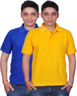 Gdivine Solid Men's Polo Neck Blue, Yellow T-Shirt(Pack of 2)