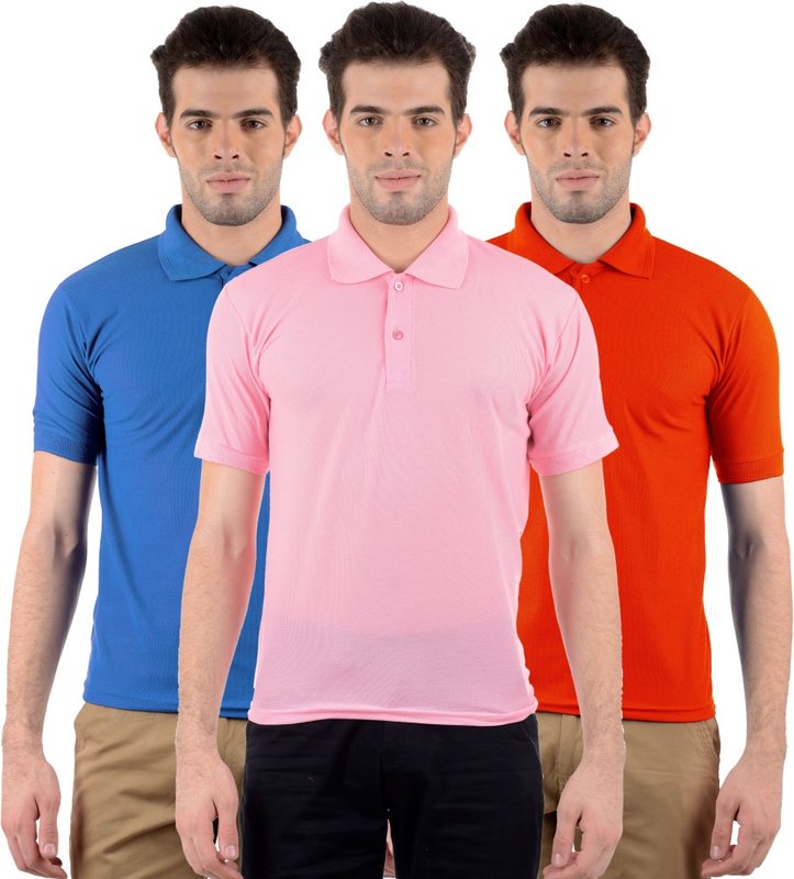 Gdivine Solid Men's Polo Neck Pink, Red, Light Blue T-Shirt(Pack of 3)