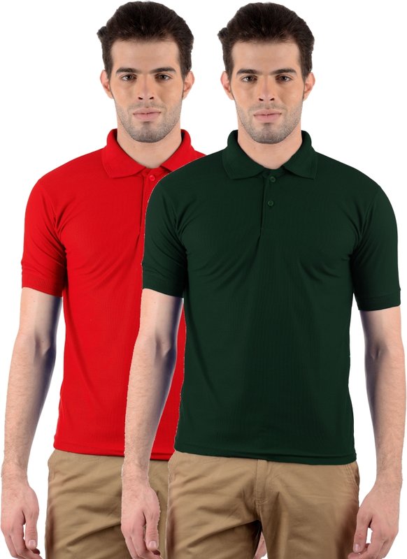Gdivine Solid Men's Polo Neck Red, Dark Green T-Shirt(Pack of 2)