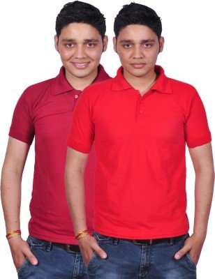 Gdivine Solid Men's Polo Neck Red, Maroon T-Shirt(Pack of 2)