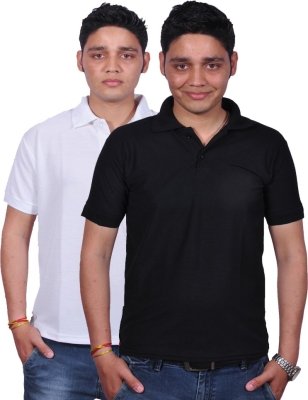 Gdivine Solid Men's Polo Neck White, Black T-Shirt(Pack of 2)