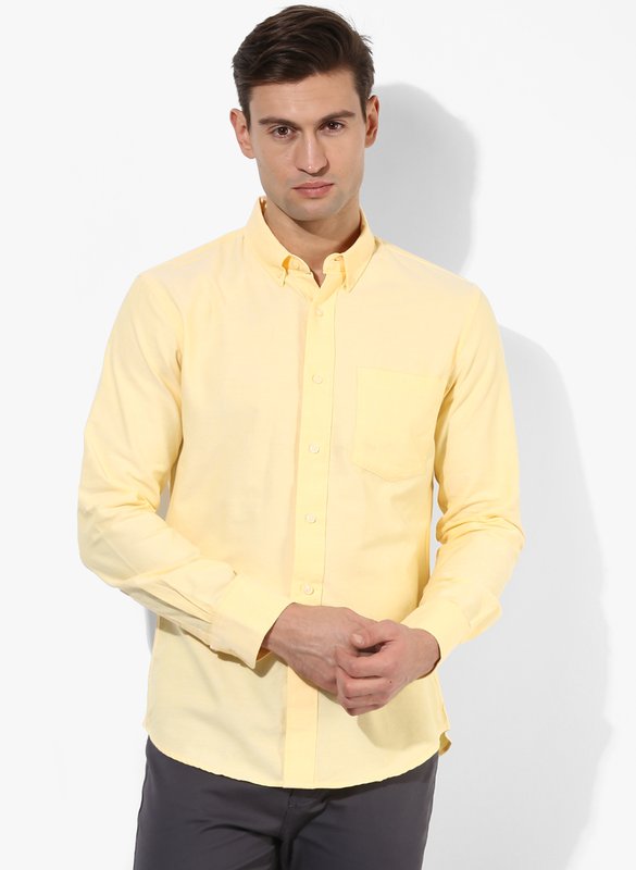 Giordano Yellow Solid Slim Fit Casual Shirt