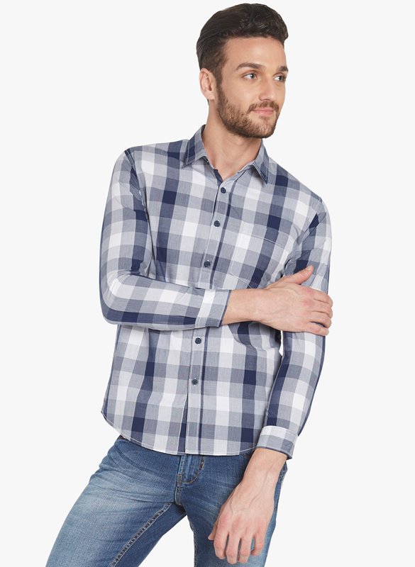 Jabong has Globus Navy Blue Checked Regular Fit Casual Shirt for Rs.1,099.00 with Free Shipping