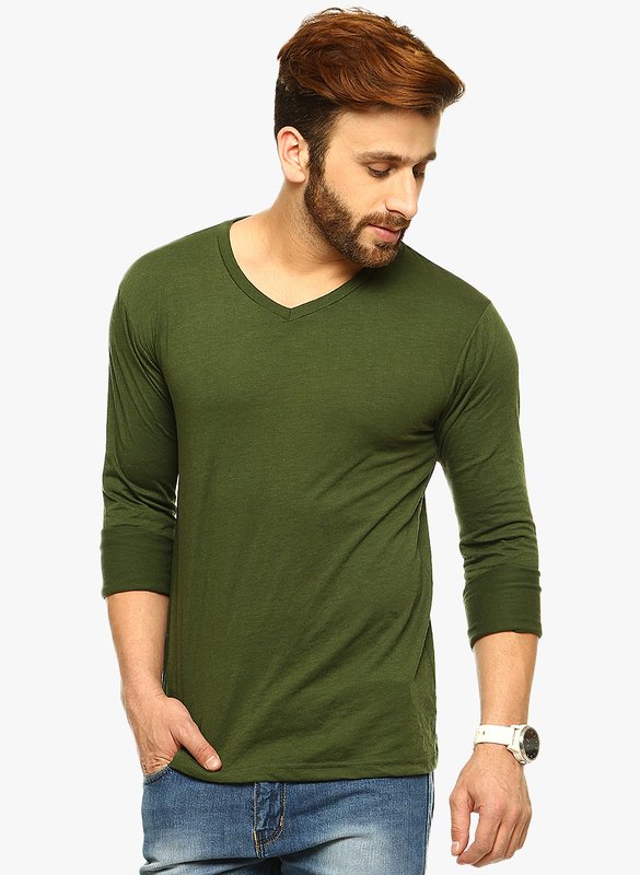 Jabong has Gritstones Green Solid V Neck T-Shirt for Rs.499.00 with Free Shipping