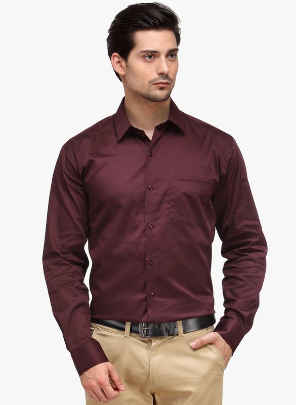 HANCOCK Maroon Solid Slim Fit Formal Shirt