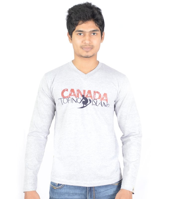 SnapDeal.com has Hueman Melange Grey Cotton Printed Full Sleeve V-neck T-shirt for Rs.699.00 - Rs.400.00 (Instant Discount) = Rs.299.00 with Free Shipping