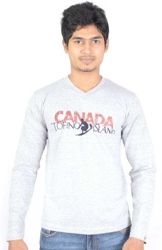 Hueman Printed Men's V-neck Grey T-Shirt
