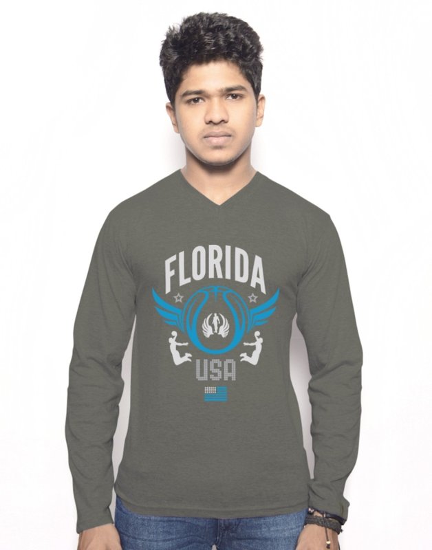 Hueman Printed Men's V-neck Silver T-Shirt